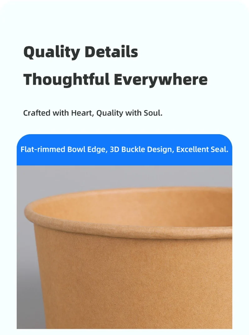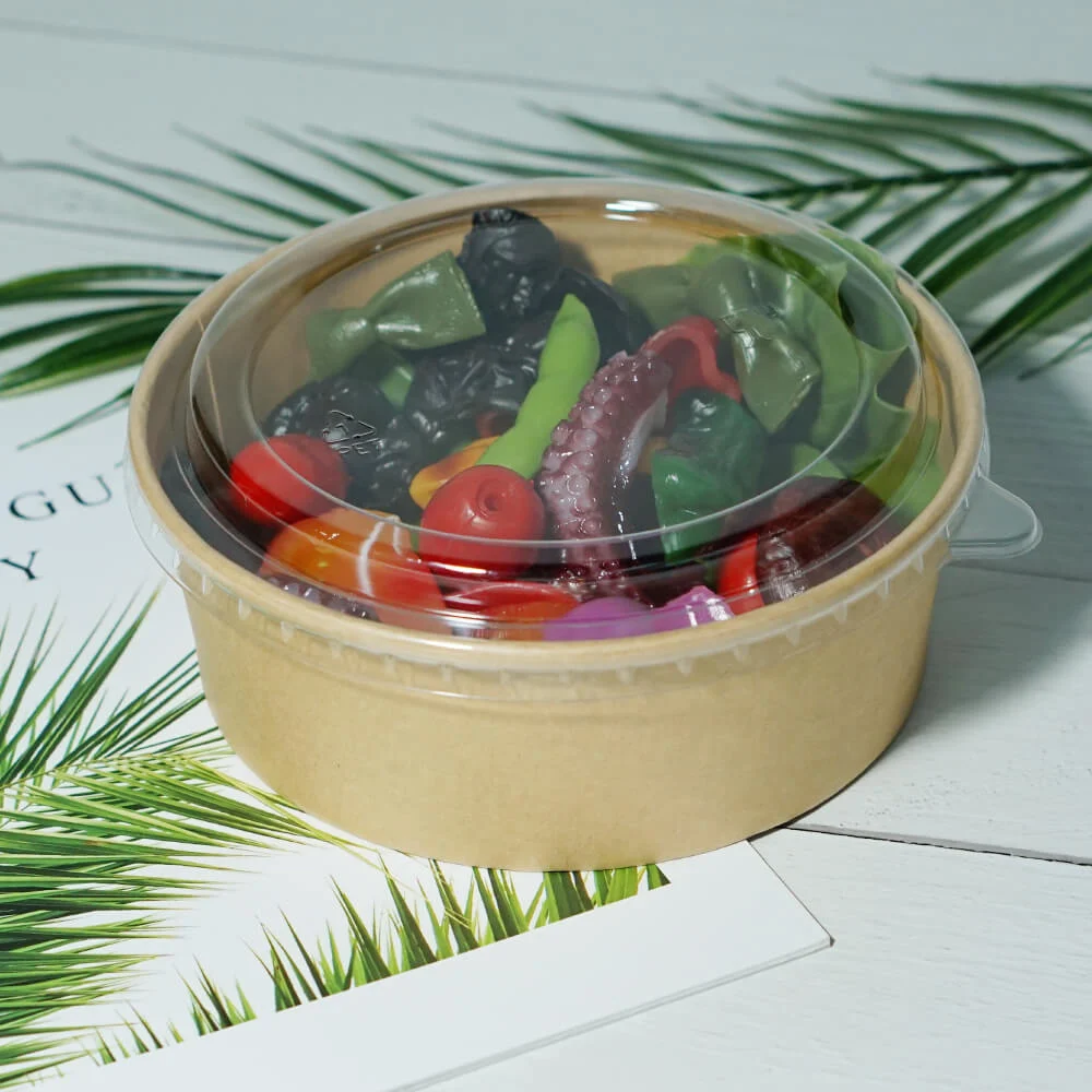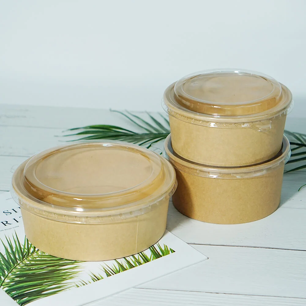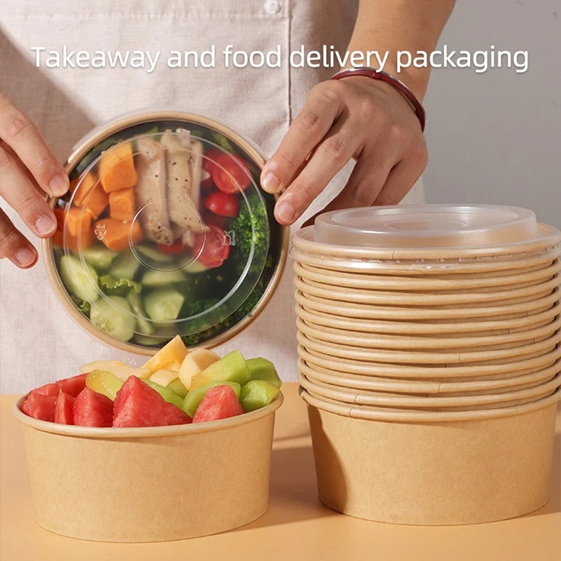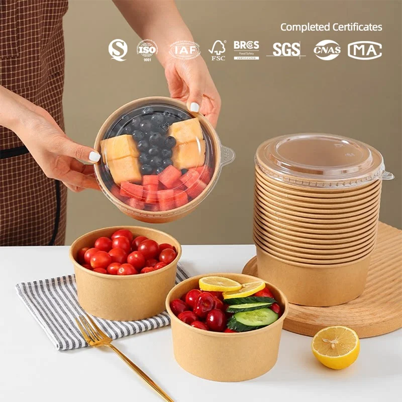 Wholesale kraft paper salad bowls with clear lids for takeout & meal prep. Multiple sizes, leak-resistant lining, OEM/ODM printing, stable supply & fast lead time.