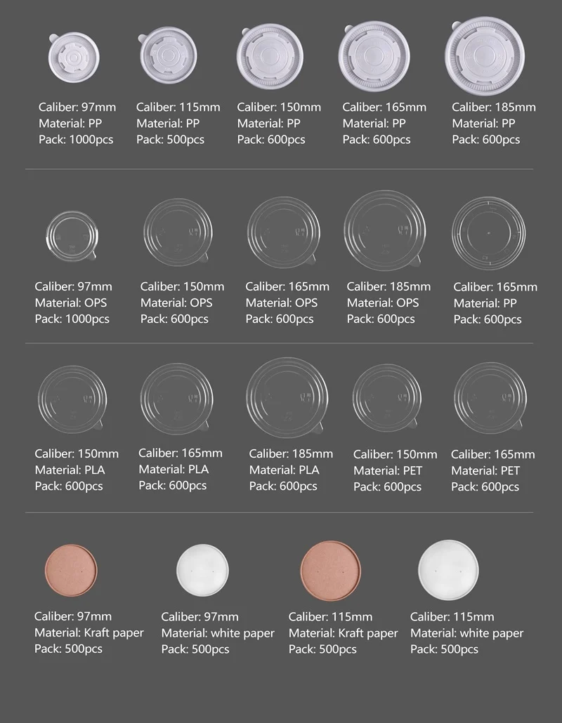 • Multi-size lineup for sides, standard salads, and “loaded” bowls (commonly 12–16oz / 24–25oz / 32oz+).